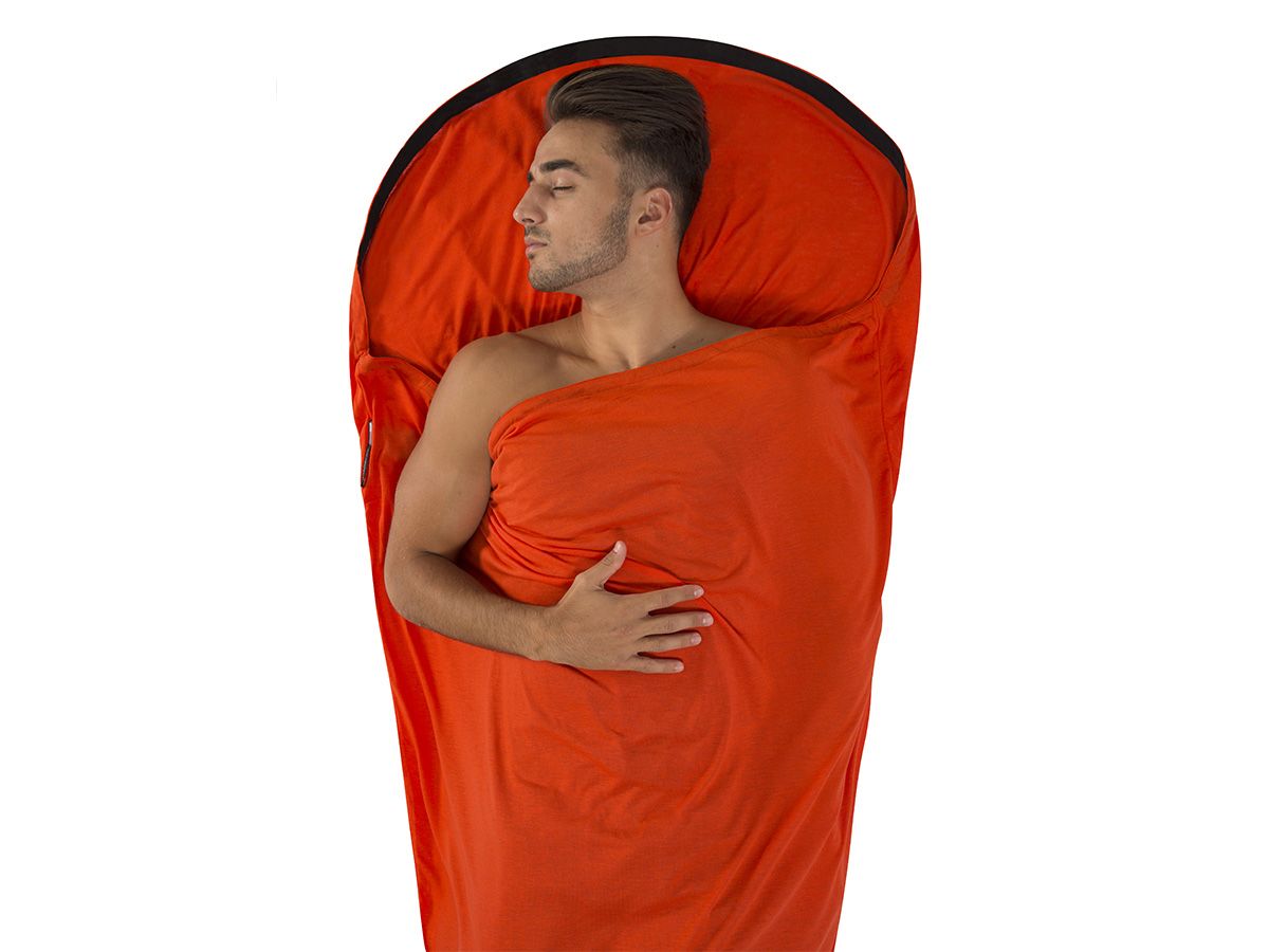 El diseno espacioso esta ligeramente afilado de la cabeza a los pies para reducir el peso y aumentar la eficiencia termica, y la capucha con cordon puede cenirse para obtener calor adicional cuando sea necesario. Este tejido de punto tambien tiene una gran elasticidad, lo que hace que el Reactor Extreme sea el forro ideal para el durmiente inquieto.