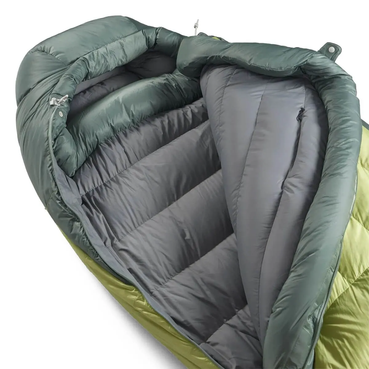 - Free Flow Zip System: regula la temperatura con diferentes configuraciones y permite abrir el saco plano como quilt.