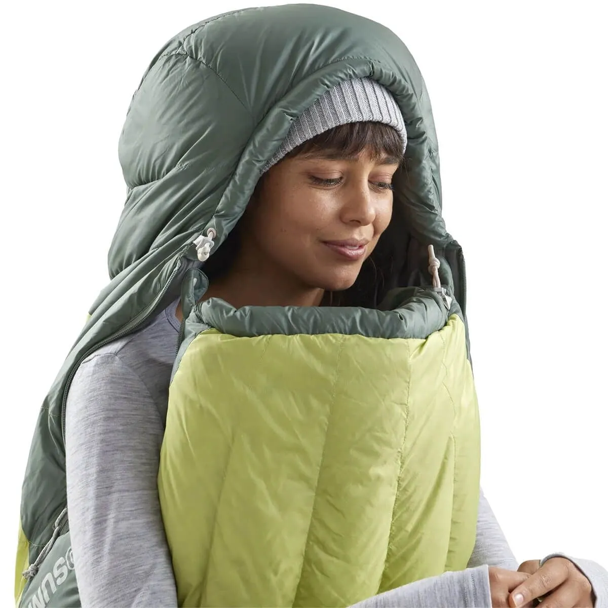 - Capucha técnica ergonómica, diseñada para máxima eficiencia térmica y compatible con almohadas Sea to Summit.