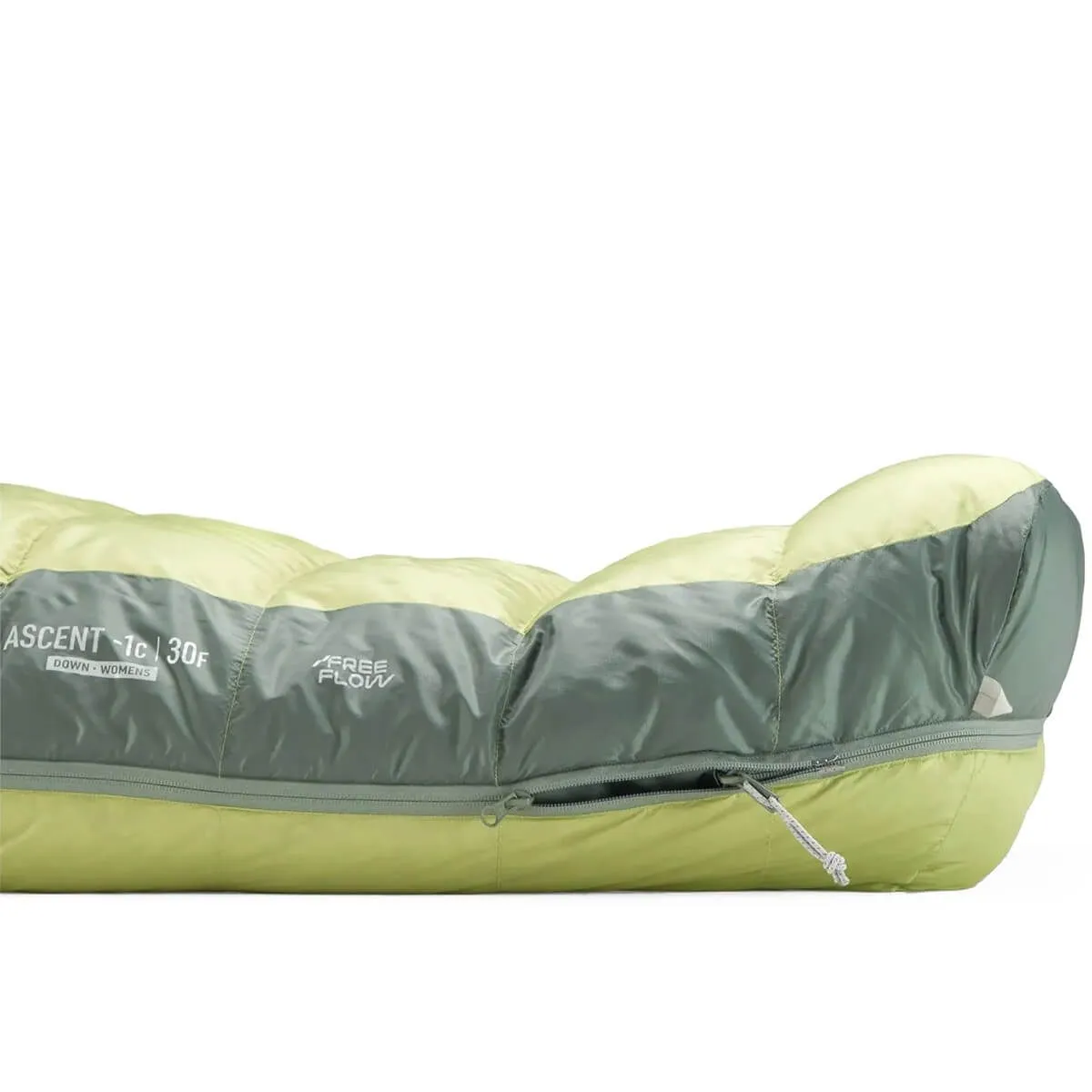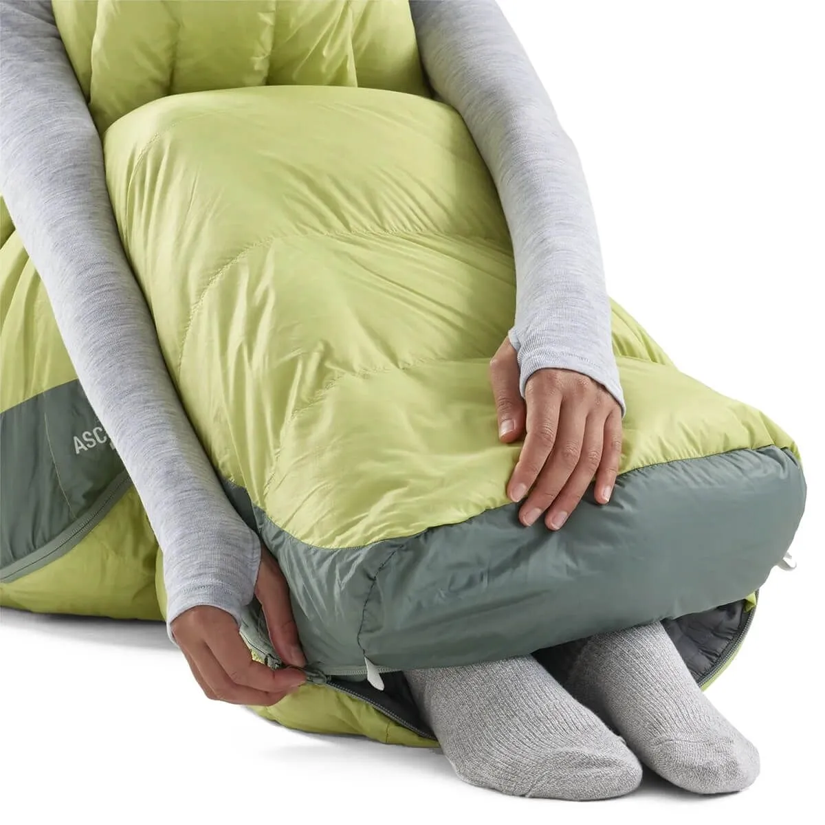El Sea to Summit Ascent Women’s Down Sleeping Bag es uno de los sacos técnicos más versátiles diseñados especialmente para mujeres. Su corte anatómico permite adoptar una posición natural al dormir sin comprimir el plumón. Con pluma de ganso 750+ Loft RDS Ultra-Dry Down™, ofrece máximo confort y calidez en climas fríos, y gracias al Free Flow Zip System se convierte en un quilt en noches más templadas.