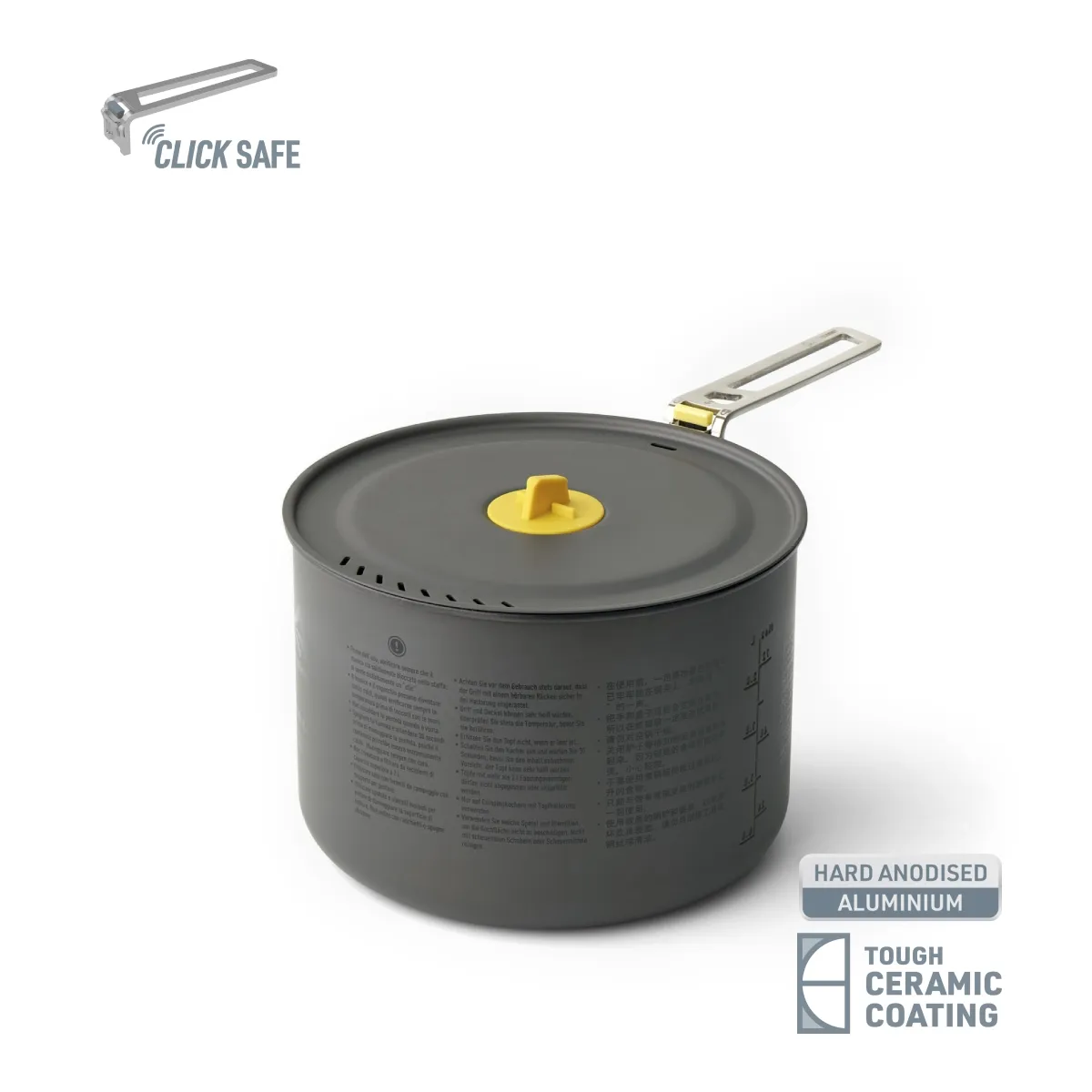 - Revestimiento Cerámico Antiadherente: Superficie de alta eficiencia que facilita la cocción y simplifica la limpieza en condiciones de escasa disponibilidad de agua.